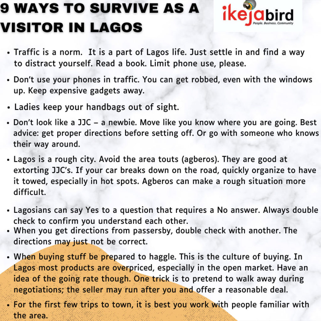 Metro + Crime9 Ways to Survive as a Visitor in Lagos April 28, 2021September 14, 2021 - by Ikejabird - Leave a Comment Recommended posts: How to survive a bandit attack 5 Ways To Get Rid Of a Dark Armpit WAYS TO MAKE MONEY AS A STUDENT IN NIGERIA