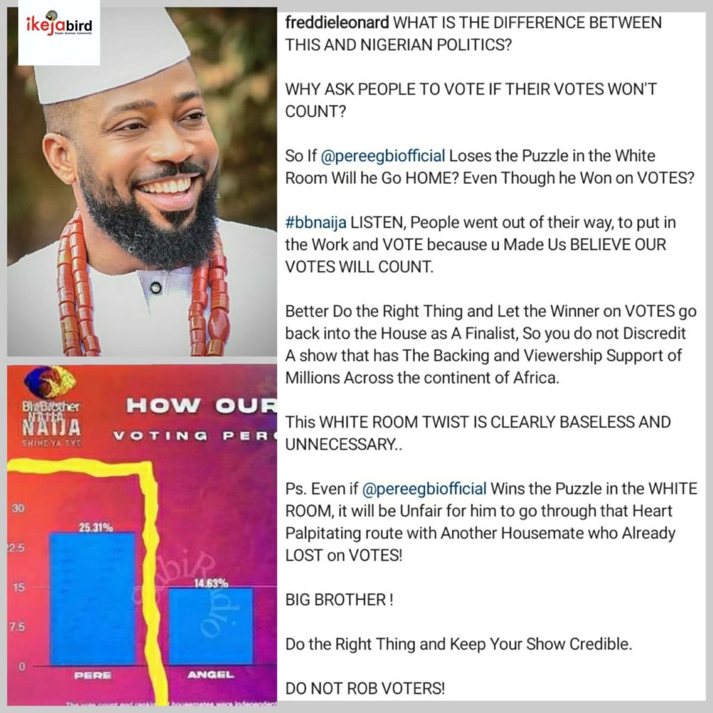 Reactions to #BBNaija housemates nomination of Pere for eviction.