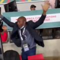 AFCON2021: Sports journalist captures moment a commentator from Equatorial Guinea jubilates after team beats Algeria.