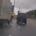 LASTMA officer clings onto a truck on motion while trying to make an arrest.