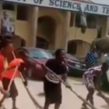Delta poly students celebrating the exit of rector by sweeping main gate