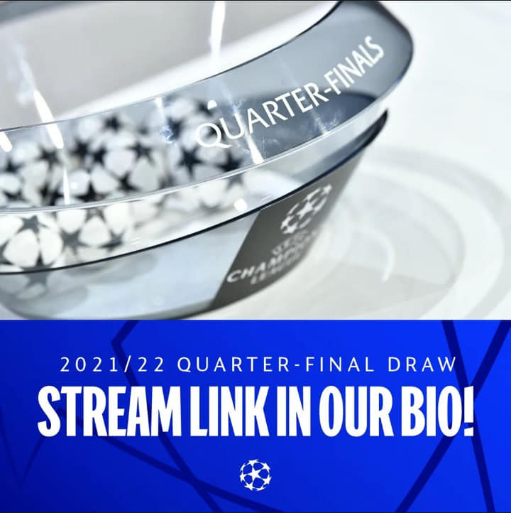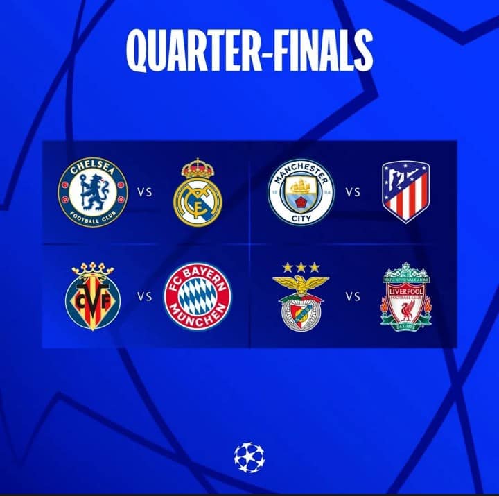 SportsCHAMPIONS LEAGUE QUARTER FINAL DRAW AND RESULT March 18, 2022March 18, 2022 - by Ikejabird - Leave a Comment IKEJABIRD SPORTS CHAMPIONS LEAGUE QUARTER FINAL DRAW AND RESULT The UCL Draw result is out…Which team would you pick to advance to semi-finals? Which team will you pick to win the prestigious trophy? Tell us in the comment section.. Recommended posts: CHAMPIONS LEAGUE REVIEW..⚽ This year is set to be one of the busiest year in football in the last few seasons..‼️ AFCON UPDATE‼️‼️ SEMI – FINALS🔥🔥🔥 The Biggest sporting News and Sports Events in 2021..🔥🔥🔥