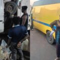A man did a dramatic stunt by walking boldly on a tractor tyre on the expressway and even proceeded to skip on it.