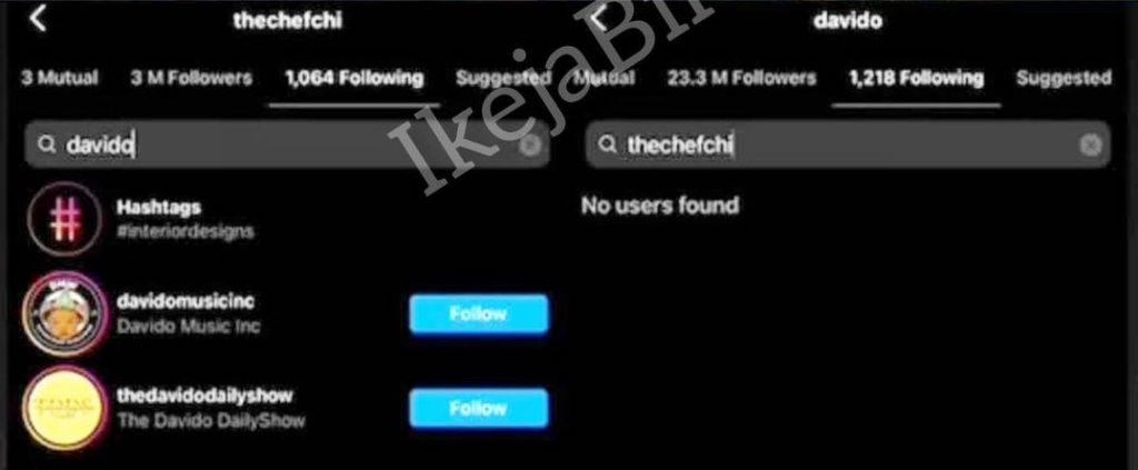 EntertainmentDavido and Chioma unfollow each other on Instagram March 31, 2022March 31, 2022 - by Ikejabird - Leave a Comment Recommended posts: Fans excited as Davido sends Private Jet to pick up Chioma and Ifeanyi for his show in London Woman Crush Wednesday: Chioma Ajunwa-Okpara #BBNaija Tega deactivates Instagram account Reactions to #BBNaija Tega deactivating her Instagram account.