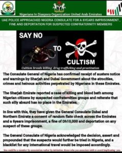They were alleged cultists engaging in rival fight. Many have been arrested and jailed in Dubai over the years.