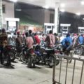 Panic buy at a fuel station in Oshodi: Motorcycle riders and car owners queue to buy PMS… Monday night..