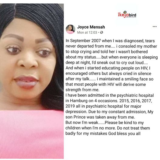 EntertainmentGhanaian actress and Former HIV/AIDS ambassador, Joyce Dzidzor Mensah drops emotional farewell note. September 21, 2021September 21, 2021 - by Ikejabird - Leave a Comment Be kind to my children when I’m no more, do not treat them badly for my mistakes Recommended posts: The Nigerian Woman and President Trump How an undergraduate started a scented candle business in Lagos Lagos bids farewell to iconic governor. Skin Bleaching: The Devil Clothed in Silk