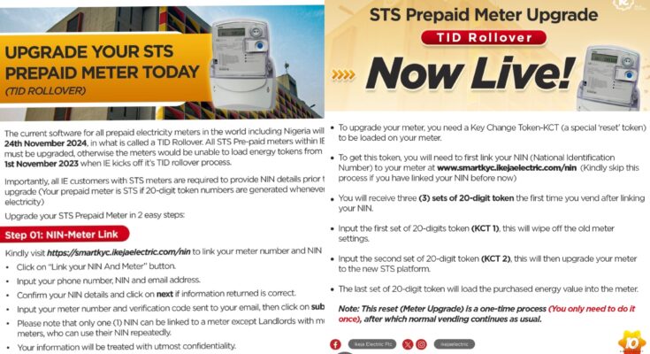 Ikeja Electric, one of the major electricity distribution companies in Nigeria, has provided a step-by-step guide on how its customers can easily upgrade their prepaid meters from home.