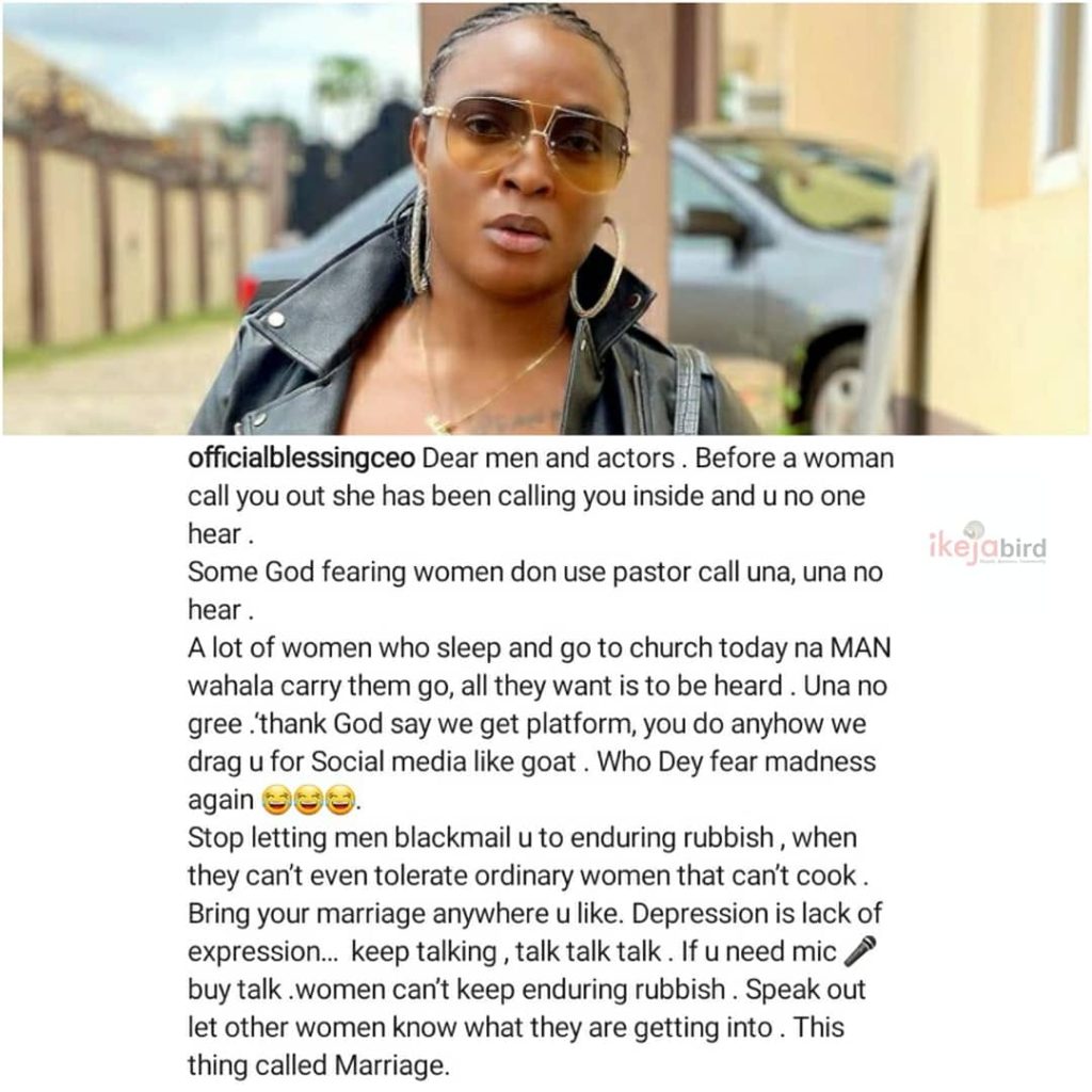 Relationship expert, Blessing Okoro slams Tega’s husband for granting interview without hearing from his wife.