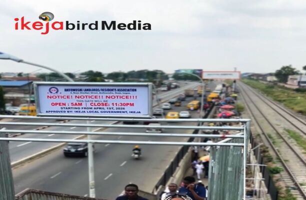 The gate recently installed on the pedestrian bridge across the railway line in Ikeja Along, came into effect yesterday.