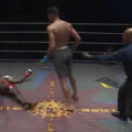 The New Zealand fighter was leading on the judges scorecard by 3-1 until Poatan struck with a flurry of punches which referee Mark Goddard had to intervene.