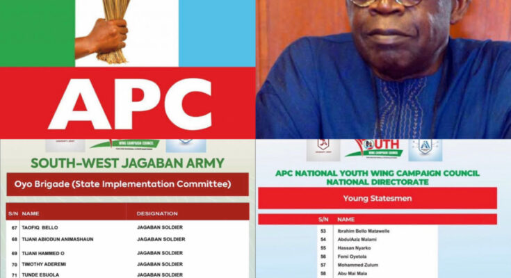 The two lists showed different names of young Nigerians who are supporters of the APC.