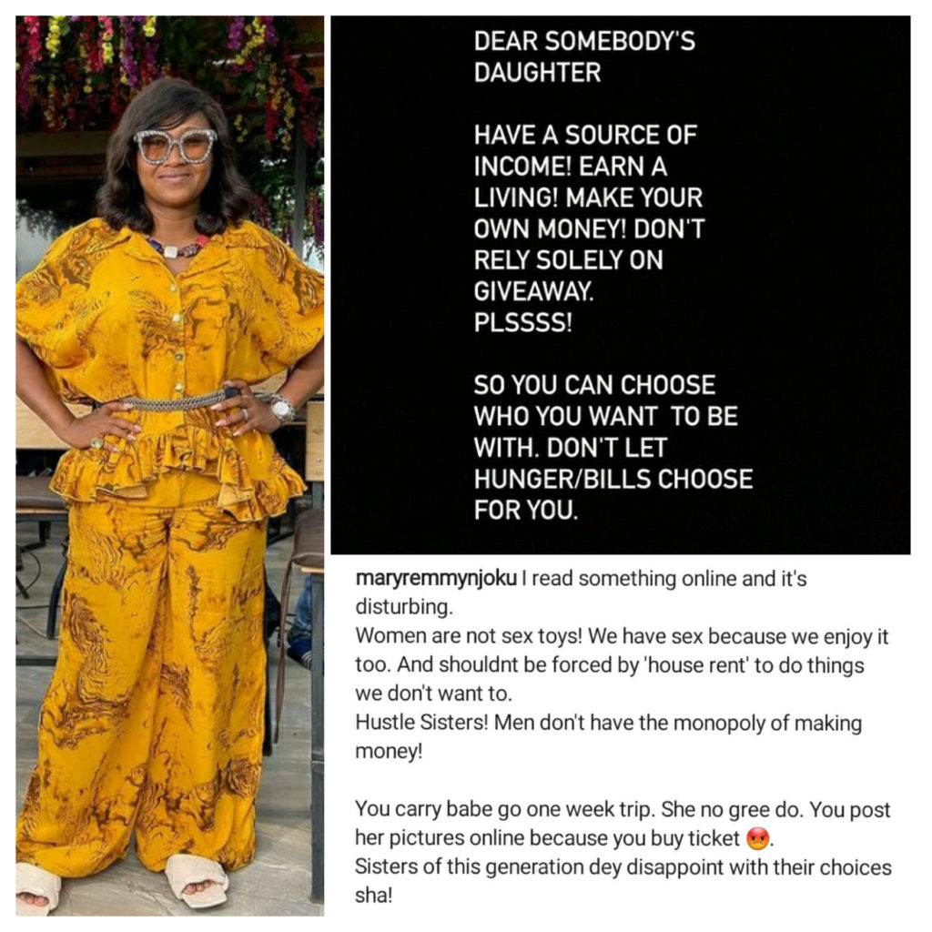 Make Your Own Money, Actress Mary Njoku Advises Ladies following viral tweet in which a man revealed what he did after a lady he took on a fully-paid one week trip refused to have a sex with him during the trip.