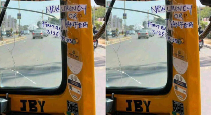 Aishat Kabu Damboa, Executive Director of Girl Child Initiative has shared a photo of a Keke rider from Maiduguri, a local government in Borno state who had informed his passengers that he will only receive either the new naira notes or cash transfer for his services.