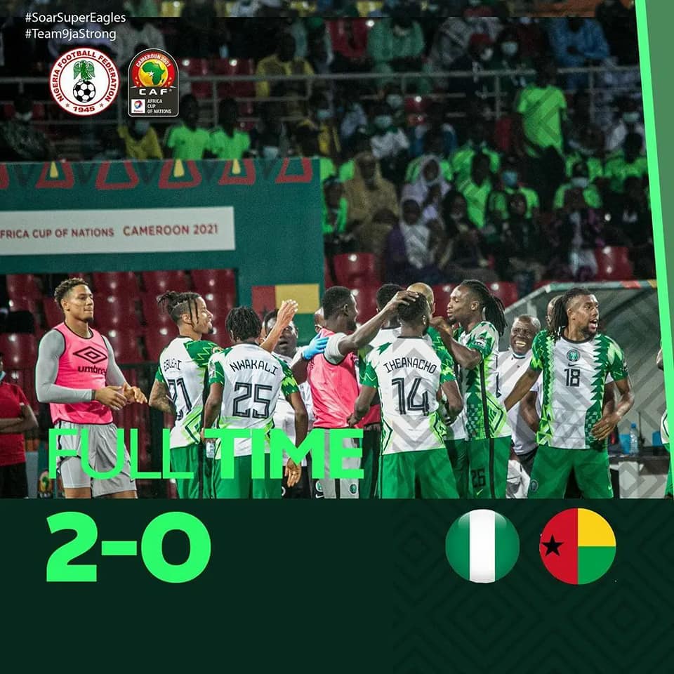 SportsNigeria π³π¬ beats Guinea-Bissau π¬πΌ 2:0 January 20, 2022January 20, 2022 - by Ikejabird - Leave a Comment Second half goals from Umar Sadiq with an assist from Kelechi Iheanacho gives Nigeria their first goal. After a sensational dribble by Moses Simon, William Troost-Ekong gives Nigeria a second goal. Recommended posts: Iheanacho Shines As Nigeria Beat Liberia 2:0 In World Cup Qualifier.. COUNT DOWN TO AFCON 2021..π₯π₯ 1 DAY 2 GO….πβ€οΈ Cristiano Ronaldo & the top 20 men’s international goalscorers of all-time. COUNT DOWN TO AFCON 2021 π₯π₯π₯