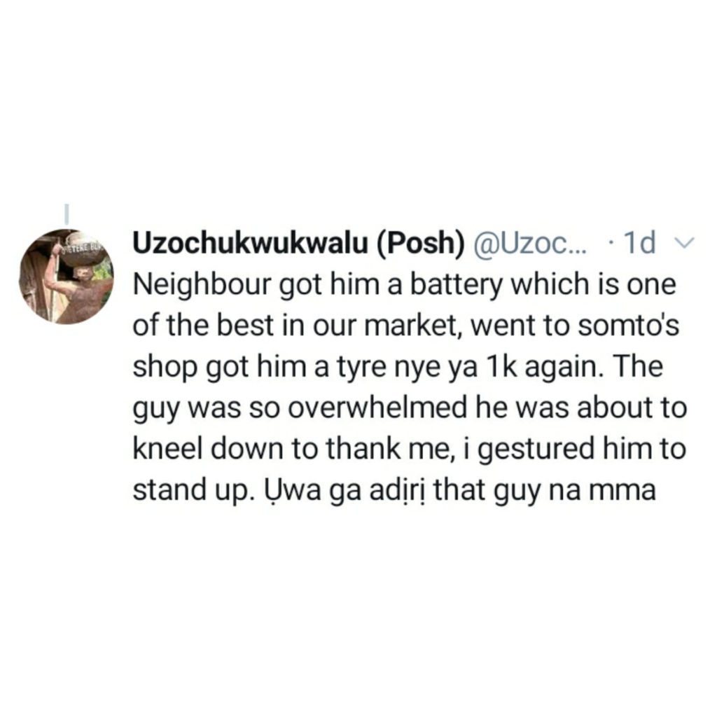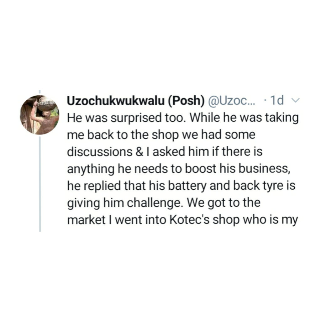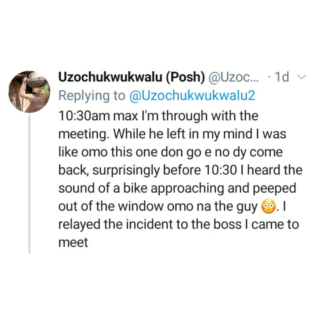 UncategorizedNigerian man shares his encounter with a sincere bike rider March 12, 2022March 12, 2022 - by Ikejabird - Leave a Comment Recommended posts: Lady shares encounter with two 419 who wanted to use an old trick on her Dispatch rider and his order. Sylvester Oromoni’s cousin shares his agonizing state before his death. Man narrates encounter with some policemen who wanted to extort them.