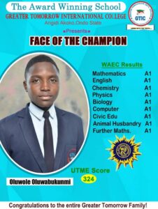 Oluwole also got straight A’s in his WASSCE. The Ondo student topped it by scoring 324 in his UTME.