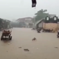 Flood takes over road, Afijalo market in Oshodi as students scamper for safety.