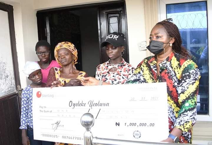 Hot Topics / Metro + CrimeSanwo-olu Relocates Yoruba Nation Rally Victim’s family to two-bedroom apartment with N1m gift. November 21, 2021November 21, 2021 - by Ikejabird - Leave a Comment Jumoke Oyeleke, a 25-year-old Shop Attendant, was killed by a stray bullet on July 3, 2021 during the Yoruba Nation rally held at Ojota, Lagos. Recommended posts: Sunday Igboho suspends Lagos Yoruba Nation rally If and when Igboho comes to trial, I guarantee you, the government will be very embarrassed” Wole Soyinka says. Trigger happy police officer murder young lady in her home. IKEJABUSINESS: Cobbler who built his shop with sand from drainage