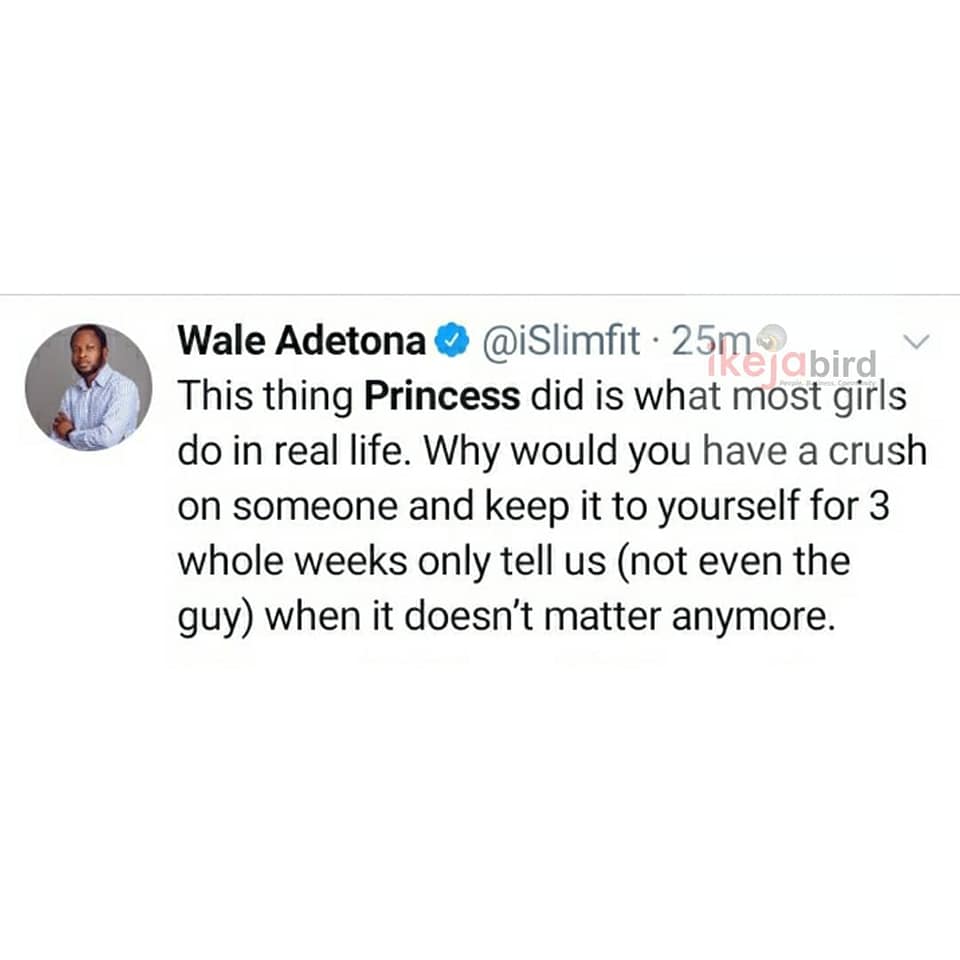 Princess is the fifth housemate to be evicted from the #bigbrothernaija #ShineYaEye house.