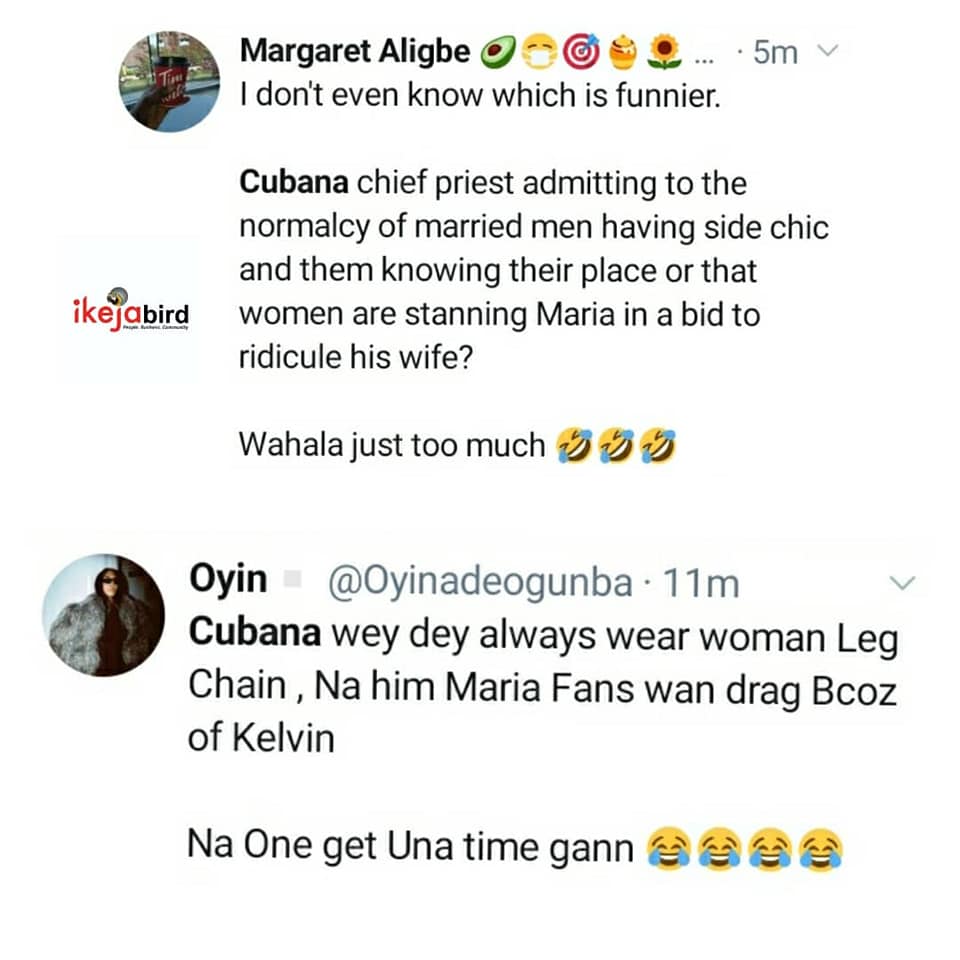 Cubana Chief Priest calls out former BBNaija housemate Maria Chike for taking his sister’s husband and threatening her.