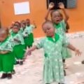 Little girl goes into the spirit during school choreography.
