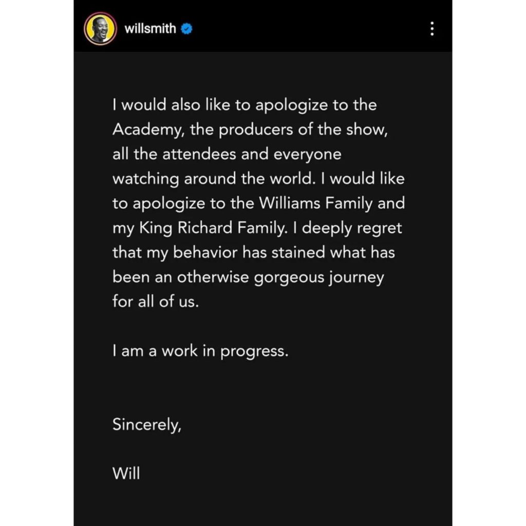 EntertainmentWill Smith tenders apologies for slapping Chris Rock yesterday at the Oscar award. March 29, 2022March 29, 2022 - by Ikejabird - Leave a Comment Chris made a joke about Jada Smith and that triggered the slap from Will Smith Recommended posts: Moment Will Smith smacked Chris Rock for joking about his wife hair loss Breaking: Police confirms kidnapped of AVM Smith, one in Lagos fresh attack A man that cannot defend his wife like Will Smith did for Jada should not marry her – Ruth Kadiri shares her opinion on Smith and Rock saga Your love for someone can be the end of you – Uti Nwachukwu shares his opinion on Smith and Rock saga